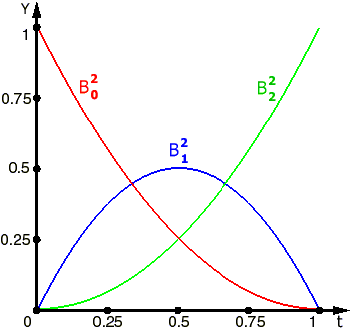 Рис. 7. Базисные функции Бернштейна для кривой Безье с 3 опорными точками.