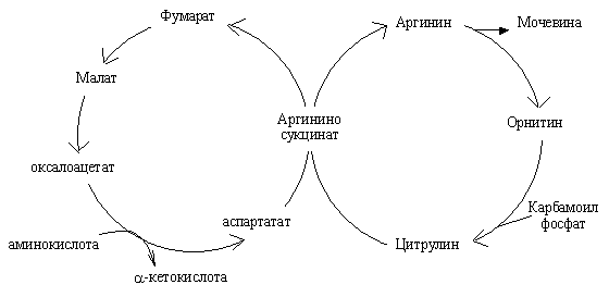 Связь орнитинового и лимоннокислого циклов на уровне субстратов.