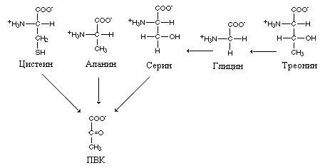 Пути, по которым происходит превращение этих аминокислот в ПВК разные. Самый прямой и короткий путь проходит аланин, который превращается в пируват при участии АЛТ. Пировиноградная кислота–исходный субстрат глюконеогенеза, поэтому активность АЛТ в клетках печени высокая.