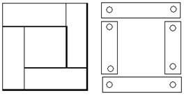 Каждая из двух обмоток 1 и 2 состоит из двух частей, расположенных на двух стержнях, соединенных последовательно либо параллельно. Это приводит к увеличению коэффициента электромагнитной связи.