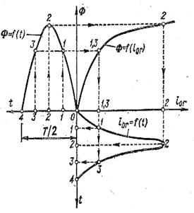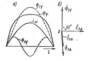 Но так как при появлении насыщения стали пропорциональность между Ф и i0r нарушается, то при синусоидальном потоке Ф ток i0r уже не будет синусоидальным.