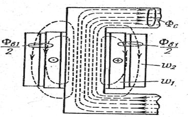 возникает заметный поток Фс, сравнимый с потоком в воздухе Фв. Поэтому опыт проводят на макетах с w1 = w2 или при замене вторичной обмотки приведенной.