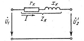 Замыкание вторичных зажимов трансформатора накоротко, соответствует замыканию накоротко вторичных (правых) зажимов схемы замещения и при этом сопротивление трансформатора будет равным zк.