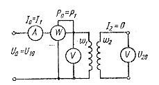 Рис. 14-10. Схема опыта холостого хода однофазного трансформатора.