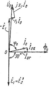 Кроме реактивной составляющей i0r, ток холостого хода i0 содержит также относительно малую активную составляющую i0а, которая синусоидальна и вызвана магнитными потерями в магнитопроводе. Полный намагничивающий ток