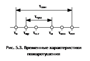 Особенности использования ПА определяются характером боевых действий, проводимых при тушении пожаров. В общем виде последовательность их реализации можно представить в виде временной характеристики пожаротушения (рис. 5.3).