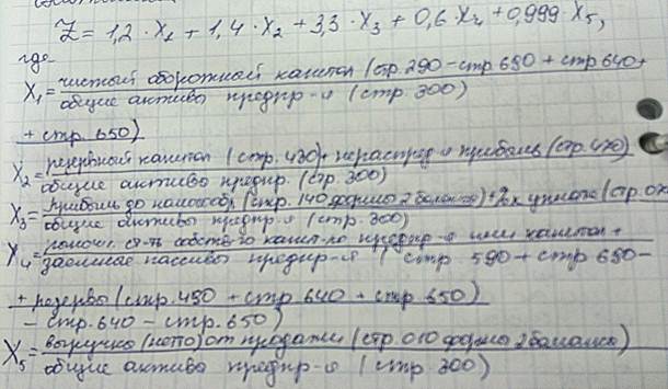 Данная модель имеет один большой недостаток, её можно применять только к предприятиям, котирующим свои акции на бирже. Поэтому Альтман создал усовершенствованную модель для производственных предприятий: