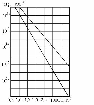 Из выражения (1.2) следует, что в чистом полупроводнике концентрации носителей
