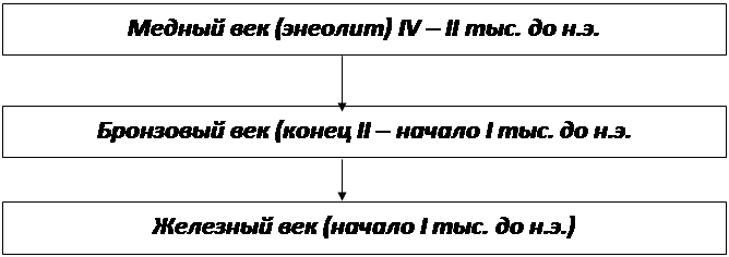 | Неолит (новокаменный век) от 7 тыс. лет. до н.э. до 4 тыс. лет до н.э. | Формирование народностей и появление первых цивилизаций (к III тыс. до н.э.) | 1.Способность человека к абстрактному мышлению; в практической деятельности создавали предметы повседневной жизни по законам красоты. 2.Окультурирование диких растений и доместикация (приручение) животных 3.Разложение общинного строя и формирование социально- классового расслоения общества заложены материальные и духовные основы культур Месопотамии, Египта, Китая, Японии и древний Америки | Победа железных орудий над каменными, земледелия – над собирательством, оседлого образа жизни – над кочевым, патриархата над матриархатом. Разделение культуры на духовную и материальную, возникновение государства, городской цивилизации и архитектуры, письменности. |
