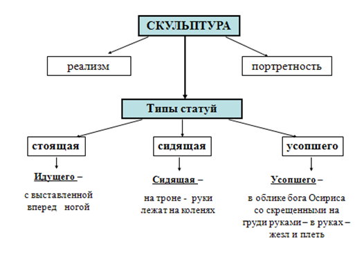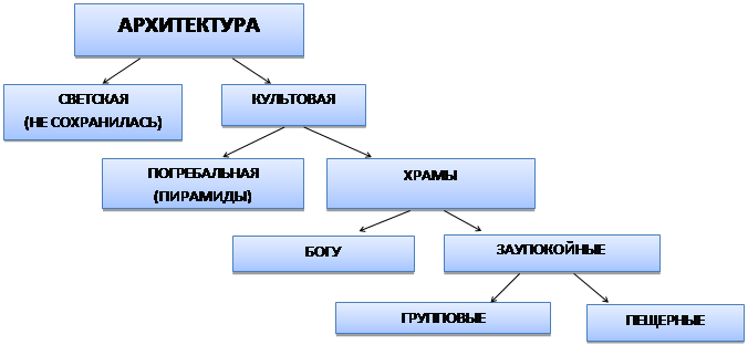 Низкий уровень развития индивидуального «Я» и самостоятельного творческого начала, связь художественной культуры с религиозно – мифологическим мировоззрением: искусство – составная часть заупокойного ритуала, оно дарит бессмертие.