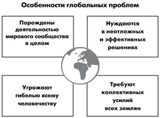 | Загрязнение окружающей среды: атмосферы, вод мирового океана, продуктов природы. | Истощение ресурсов. | Этнические, конфессиональные конфликты. | Проблема ответственности ученых за последствия своих открытий. | |