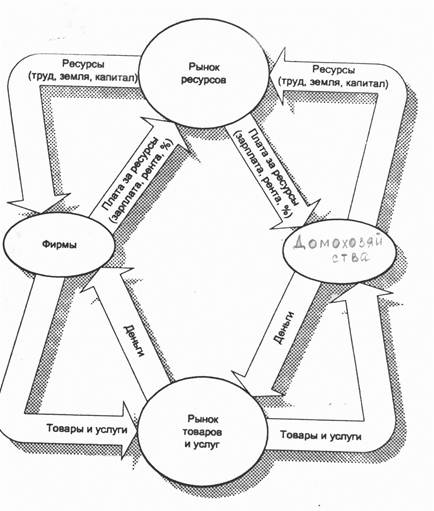Чтобы купить необходимые им товары и услуги, домохозяйства должны располагать необходимым количеством денег, получить которые они могут, лишь продав принадлежащие им ресурсы на рынке ресурсов. Таким образом, домохозяйства, с одной стороны, выступают как покупатели на рынке товаров и услуг, а с другой, являются продавцами на рынке ресурсов.