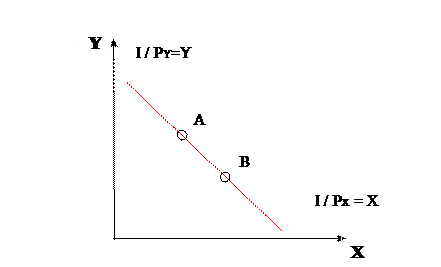 Бюджетная линия – все товарные наборы, соответствующим точкам на бюджетной линии по стоимости равны доходу и являются доступными.