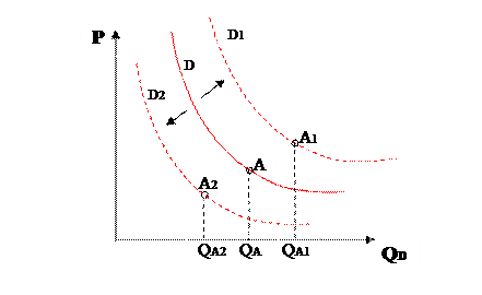 Рис.9. Смещение кривой спроса под влиянием неценовых факторов
