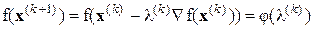 , где k – номер шага метода, k=0, 1, …. Введение направления, противоположного градиенту, т.е. направления наискорейшего спуска, дает следующую формулу перехода из