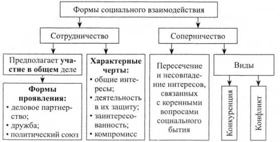 В повседневной жизни общества мы наблюдаем постоянное социальное взаимодействие. Попробуем представить формы социального взаимодействия людей графически.