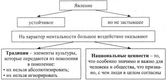 - Каким образом на характер ментальности оказывают воздействие национальные традиции и ценности?