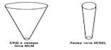 Угловая расходимость излучения оценивается на уровне уменьшения мощности в пространстве в два раза (РМАКС /2), что отмечено на рисунке точками на пересечении лучей и кривых распределения мощности. Для поверхностного СИД величины φx» φy и могут составлять 110°...180°. Для СЛД величины φx и φy не равны и примерно составляют: φx» 60 °, φ y» 30.