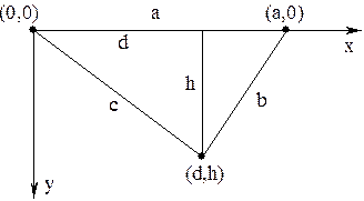 Продемонстрируем использование процедур класса TCanvas на примере изображения треугольника с известными сторонами. Расположим треугольник, как показано на следующем рисунке: