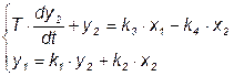 Считая, что y1 = ΔGc, y2 = ΔH, x1 = ΔGп, x2 = Δfc, линеаризованную модель бака с жидкостью можно представить следующей системой уравнений: