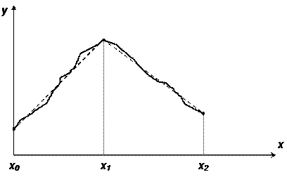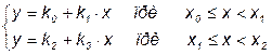 В случае необходимости моделирования объекта в широком диапазоне режимов при существенном изменении крутизны характеристик переходят к их кусочно-линейной аппроксимации, осуществляя линеаризацию на отдельных участках изменения координат (рис.5).