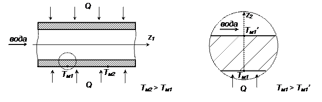 Рассмотрим для примера участок трубы, в которой вода нагревается подводимым снаружи теплом (рис.6).