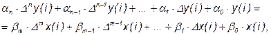 – производные j -го порядка от переменных. Из теории дискретных систем известно, что такому дифференциальному уравнению можно поставить в соответствие так называемое разностное уравнение вида