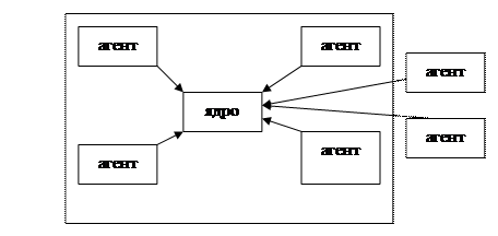 Ядро – головное подразделение. Агенты – структурные подразделения, выполняющие все необходимые функции. Такой тип организационной структуры использует принципы рыночных отношений.
