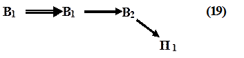 Необходимо обнаружить вещество В1 . Для этого к нему присоединяют вещество В2, которое генерирует поле П1. В веполном виде генерирование поля описано формулой (19). Слева показано, что имеется в системе (что нужно обнаружить или измерить). Двойная стрелка указывает, что необходимо сделать.