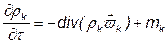 Это уравнение также называют уравнением неразрывности или сплошности. В такой же форме записывается уравнение закона сохранения массы и для многокомпонентных смесей, если в них не происходит химических реакций и фазовых переходов. В противном случае в правую часть уравнения включают удельную мощность изменения массы компонента mk, диффузионный перенос массы при этом не учитывается: