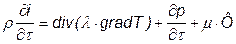 где i – энтальпия; λ – коэффициент теплопроводности; Т – температура; μ – коэффициент динамической вязкости; Ф – диссипативная функция Рэлея, учитывающая рассеивание кинетической энергии вследствие действия сил вязкости.