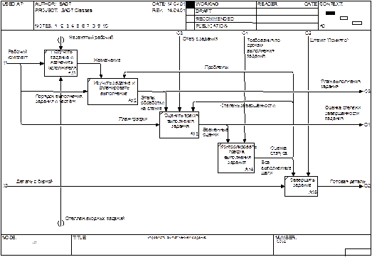 Выбор точки зрения означает также выделение определенных аспектов системы и применение определенной терминологии. Без правильно расставленных акцентов и терминологии согласованное изложение практически невозможно. Одна из сложнейших задач автора в SADT -оставаться в рамках выбранной точки зрения, поскольку выявленное множество подробностей о работе системы, которые не вписываются в принятую точку зрения, вызывают сильное искушение изложить их. Например, факты, связанные с планированием задания, входят в сферу интересов как мастера, так и рабочего. Мастер в большей степени заинтересован в плане в целом и в том, сколько времени займет его выполнение. Рабочего же больше интересуют конкретные шаги, необходимые для выполнения задания. Разделив эти два вопроса и отразив их на диаграммах А1 и А2, автор ясно и раздельно описал деятельность двух очень разных работников механического цеха.