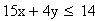Количество единиц жира, содержащегося в х кг продукта Р и в у кг продукта Q, равно 15 х + 4 и по условию диеты не должно превосходить 14: