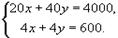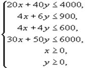 | Материал (фунты) Время на прессование (часы) Время на отделку (часы) Средства (деньги) | 20 4 4 30 | 40 6 4 50 | 4000 900 600 6000 |