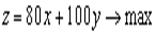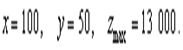 Вычислить значения z в точках В (0, 100), Е (150, 0), М (100, 50):