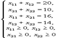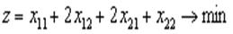 Получаем задачу линейного программирования, в которой основные ограничения вследствие того, что транспортная задача сбалансирована, является равенствами.