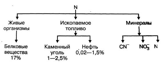Формы существования азота в земной коре весьма разнообразны. Он входит в состав различных минералов, содержится в каменном угле, нефти и других видах ископаемого топлива.
