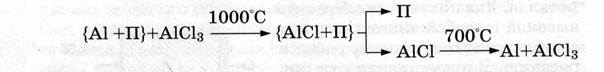 При охлаждении продуктов перегонки до 700ºС субсоединения разлагаются на алюминий и хлорид алюминия, который возвращается в процесс: