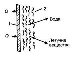 Рис. 12.4. Схема термофизических процессов при коксовании шихты: 1 — стенка, 2 — шихта
