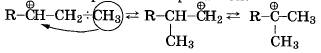 · изомеризация в стабильный третичный карбкатион через нестабильный первичный карбкатион: