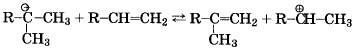 с образованием конечных продуктов — изоалкана и изоалкена и вторичного карбкатиона, генерирующего цепь.