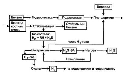 — блока стабилизации бензина (катализата) в случае облагораживания бензина или блока выделения углеводородов в случае ароматизации.