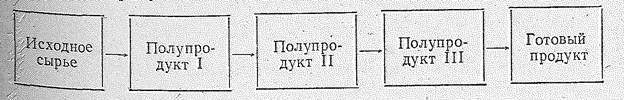 Полупродукты: окись этилена, ацетальдегид, фенол, нитробензол и другие — образуются в результате предварительной химической переработки исходных веществ и в свою очередь могут служить сырьем для получения более сложных органических веществ (пластмасс, волокон, красителей, лекарственных препаратов, физиологически активных веществ и д.р.). Связь исходного сырья готовым продуктом можно представить схемой