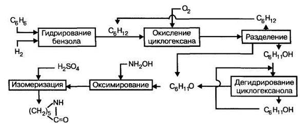 Рис. 14.11. Структурная схема производства капролактама из бензола