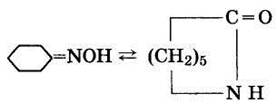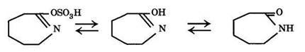 5. Изомеризация циклогексаноноксима в капролактам (Бекмановская перегруппировка) протекает в присутствии концентрированной (98%-ной) серной кислоты или 20% -ного олеума при температуре 125 оС: