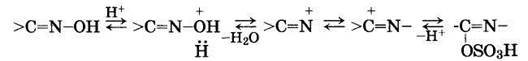 Реакция оксимирования обратима. Равновесие ее сдвигается в сторону образования оксима при понижении кислотности среды, то есть при связывании выделяющейся кислоты щелочным реагентом. Реакция протекает в гетерогенной системе, в диффузионной области и, поэтому, ускоряется путем интенсивного перемешивания реагентов. Чтобы избежать побочных реакций конденсации циклогексанона оксимирование проводится в две стадии. Сначала процесс ведется в избытке циклогексанона, а затем, в избытке гидроксиламина. Выход циклогексаноноксима в этих условиях приближается к 100%.