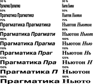 Допустимый диапазон изменения пропорций знаков зависит от рисунка шрифта и индивидуален для каждой гарнитуры. Не допускать чудовищных искажений рисунка знаков помогают только опытный глаз художника и чувство меры.