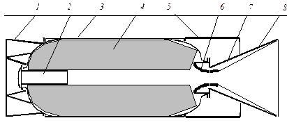 Рис.12. Схема ракетного блока с ракетным двигателем твердого топлива