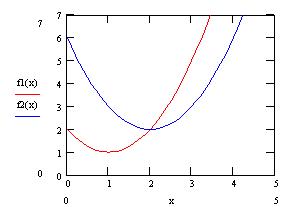 Пример. Пусть в области D={0;4} заданы два критерия F1(x)=(x-1)2+1 F2(x)=(x-2)2+2, которые нужно минимизировать (рис.1). Критерий F1важнее критерия F2 (F1 предпочтительнее F2).