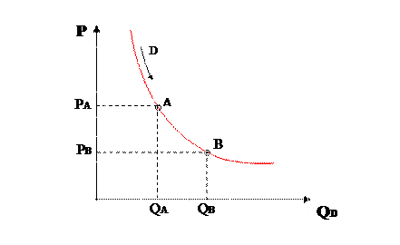 Точки А и В на кривой спроса – величины. Они курсируют по кривой Д под влиянием изменения цены.